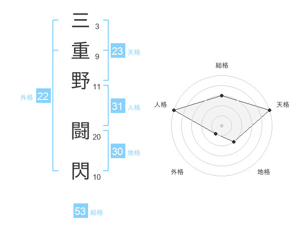 三重野 闘閃さんの総格は53画の3点!