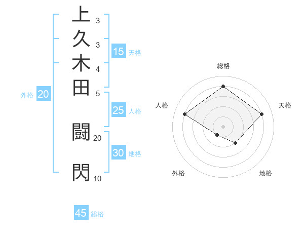 上久木田 闘閃さんを姓名の画数から五運を鑑定
