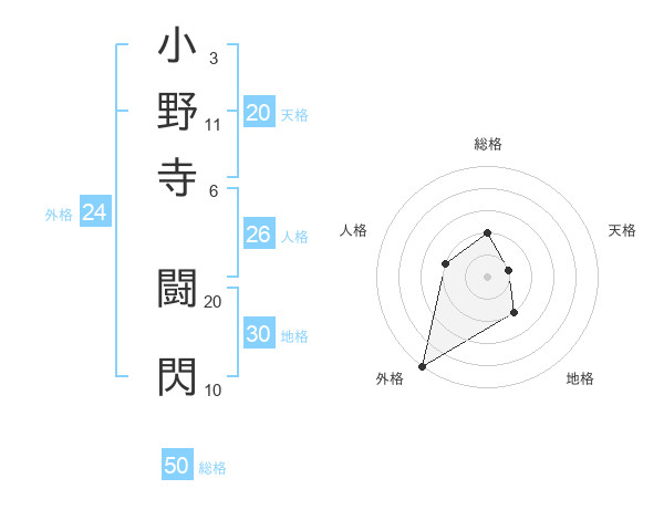 小野寺 闘閃さんの総格は50画の2点!