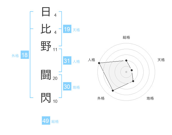 日比野 闘閃さんを姓名の画数から五運を鑑定