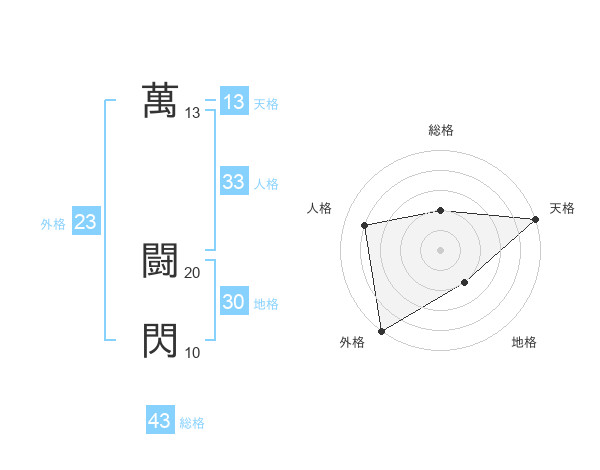 萬 闘閃さんの天格は13画の5点!