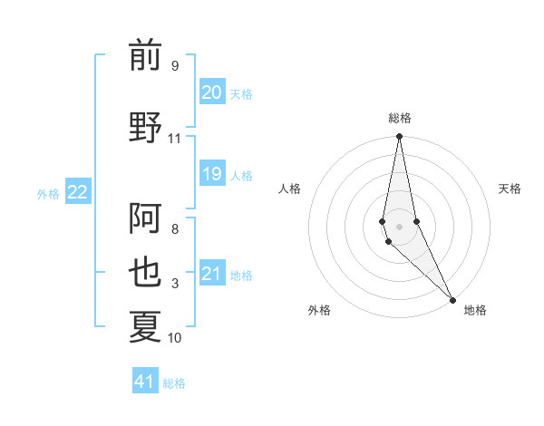 前野 阿也夏さんを姓名の画数から五運を鑑定