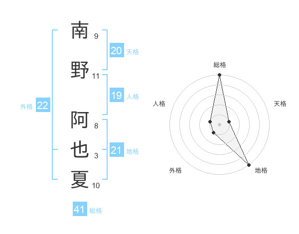 南野 阿也夏さんを姓名の画数から五運を鑑定