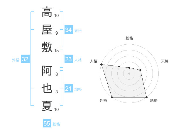 高屋敷 阿也夏さんを姓名の画数から五運を鑑定