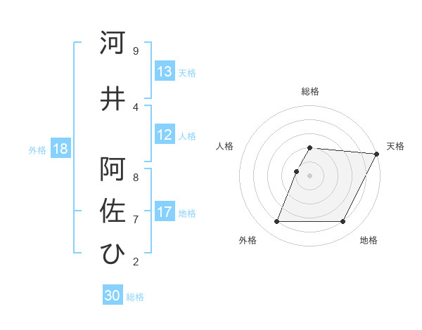 河井 阿佐ひさんを姓名の画数から五運を鑑定
