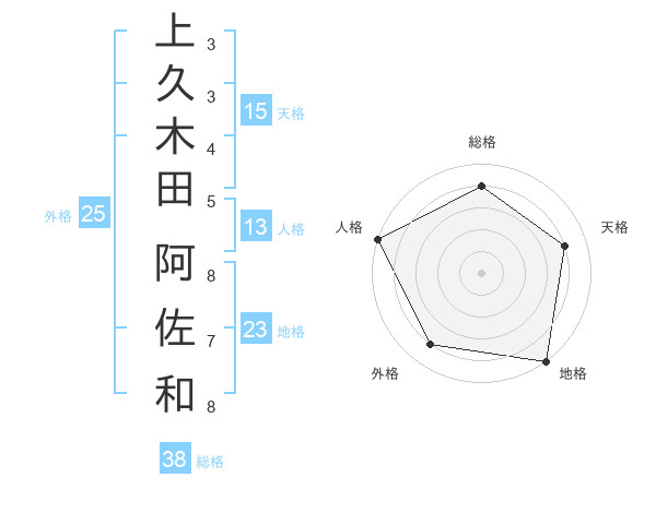 上久木田 阿佐和さんの総格は38画の4点