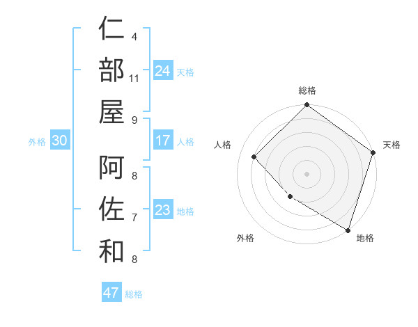 仁部屋 阿佐和さんの総格は47画の5点!
