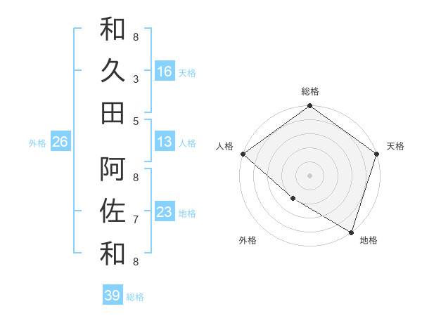 和久田 阿佐和さんを姓名の画数から五運を鑑定