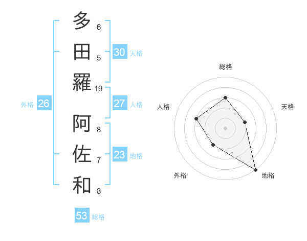 多田羅 阿佐和さんを姓名の画数から五運を鑑定