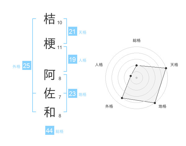 桔梗 阿佐和さんの天格は21画の5点!