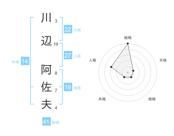 川辺 阿佐夫さんを姓名の画数から五運を鑑定