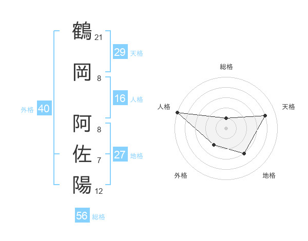 鶴岡 阿佐陽さんの総格は56画の1点!