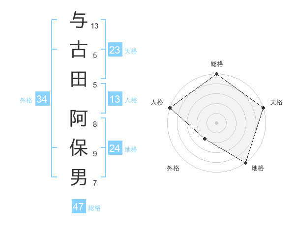 与古田 阿保男さんを姓名の画数から五運を鑑定
