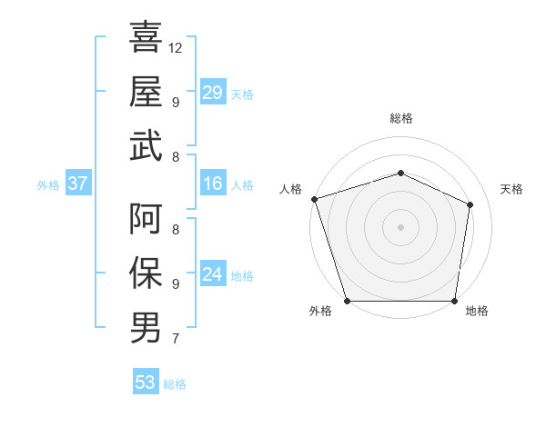 喜屋武 阿保男さんを姓名の画数から五運を鑑定