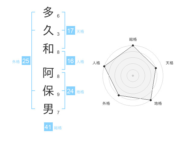 多久和 阿保男さんを姓名の画数から五運を鑑定