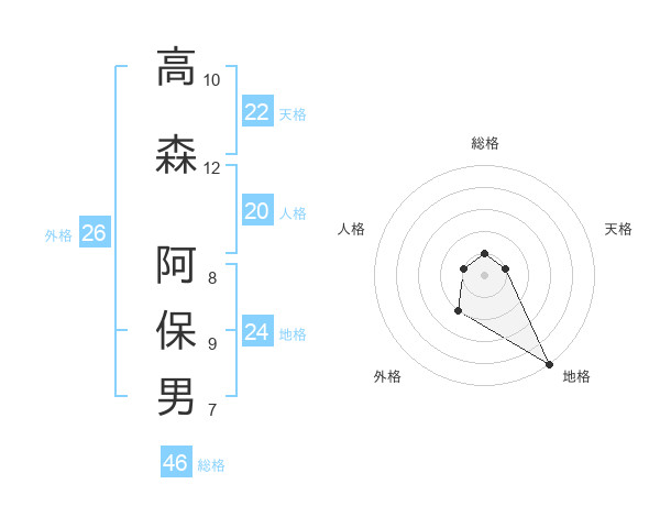 高森 阿保男さんを姓名の画数から五運を鑑定