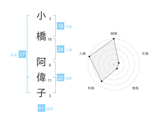 小橋 阿偉子さんを姓名の画数から五運を鑑定