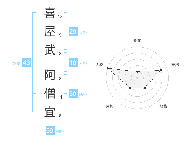 喜屋武 阿僧宜さんの外格は43画の2点!