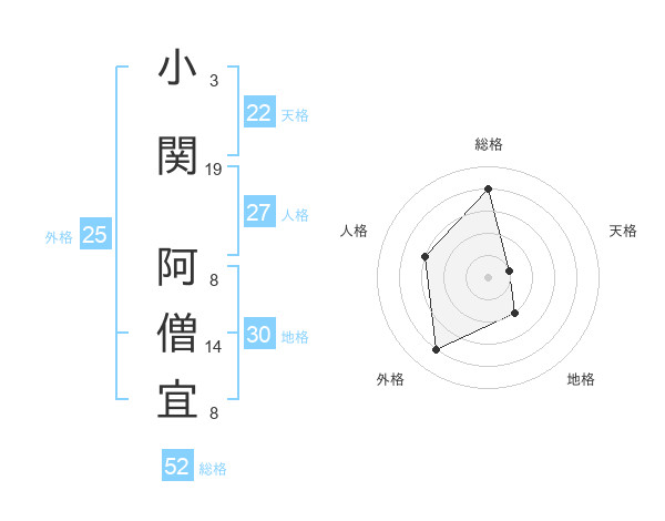 小関 阿僧宜さんを姓名の画数から五運を鑑定