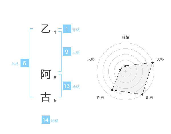 乙 阿古さんの総格は14画の1点!