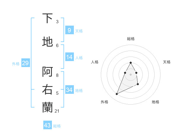 下地 阿右蘭さんを姓名の画数から五運を鑑定
