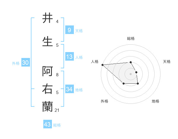 井生 阿右蘭さんを姓名の画数から五運を鑑定