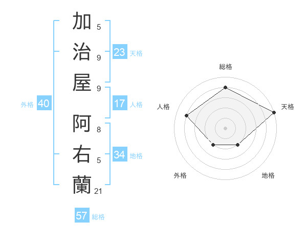 加治屋 阿右蘭さんを姓名の画数から五運を鑑定