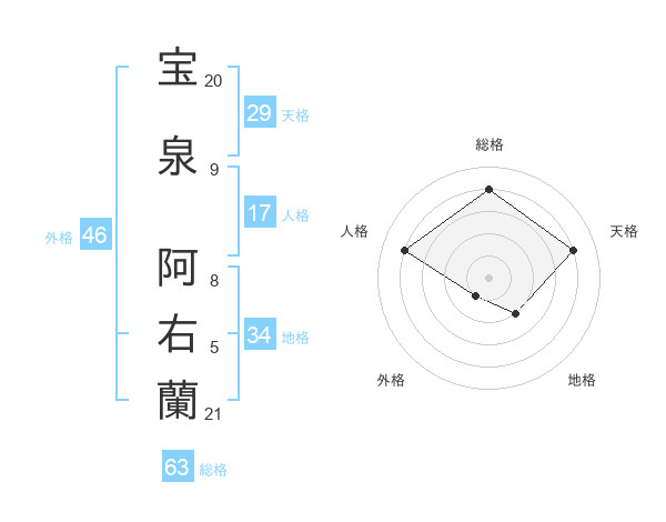 宝泉 阿右蘭さんを姓名の画数から五運を鑑定