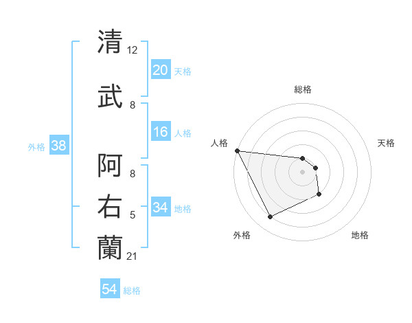 清武 阿右蘭さんを姓名の画数から五運を鑑定