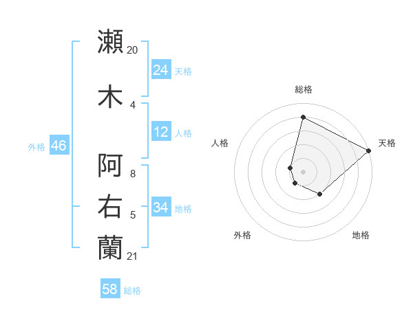 瀬木 阿右蘭さんを姓名の画数から五運を鑑定