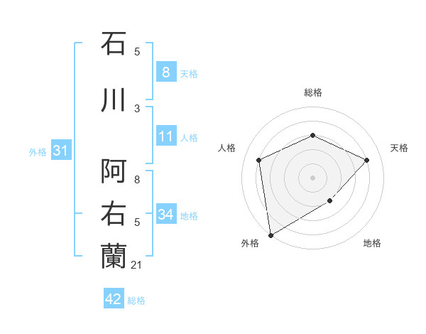 石川 阿右蘭さんの総格は42画の3点