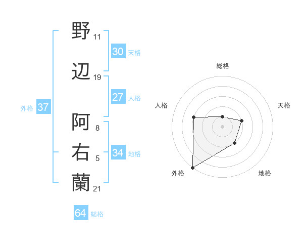 野辺 阿右蘭さんの外格は37画の5点!