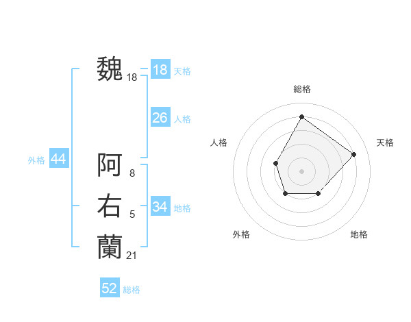 魏 阿右蘭さんの総格は52画の4点!