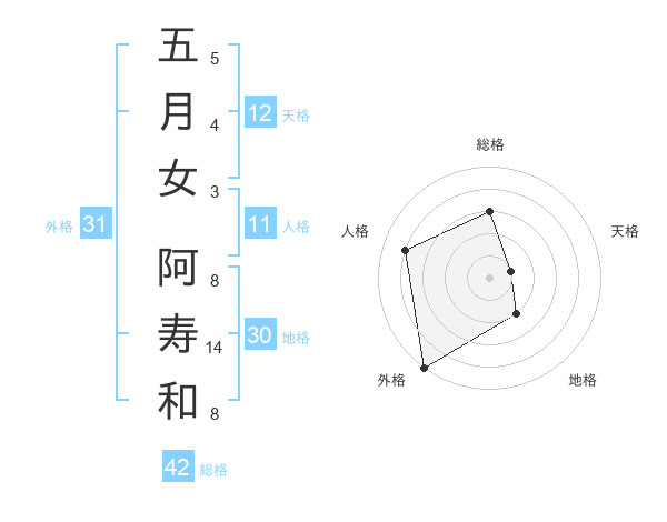 五月女 阿寿和さんを姓名の画数から五運を鑑定
