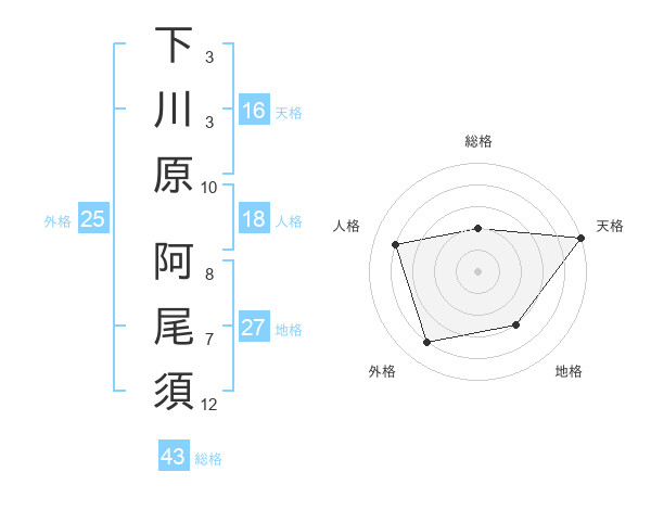 下川原 阿尾須さんを姓名の画数から五運を鑑定