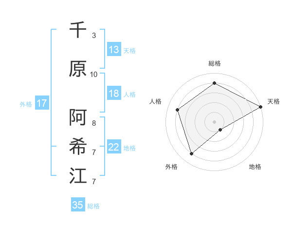 千原 阿希江さんの総格は35画の4点!