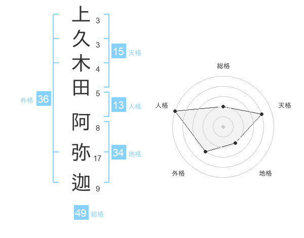上久木田 阿弥迦さんを姓名の画数から五運を鑑定