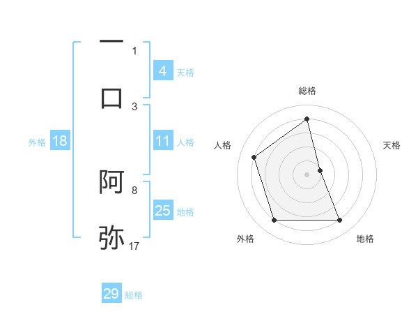 一口 阿弥さんの地格は25画の4点!