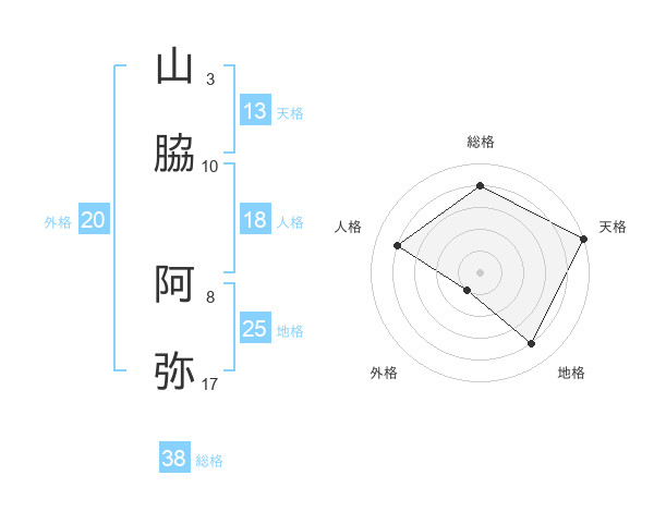 山脇 阿弥さんを姓名の画数から五運を鑑定
