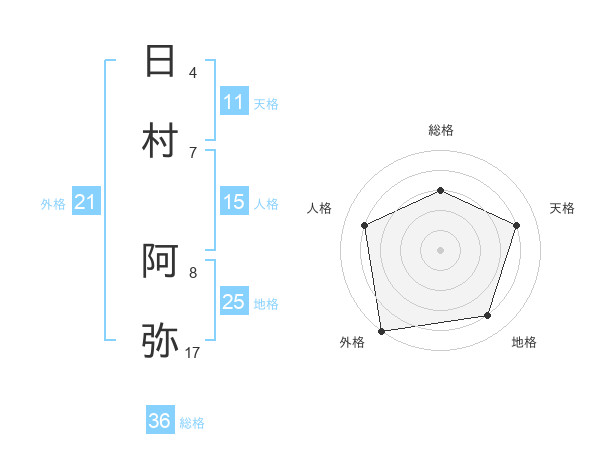 日村 阿弥さんの天格は11画の4点!