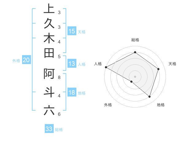 上久木田 阿斗六さんを姓名の画数から五運を鑑定
