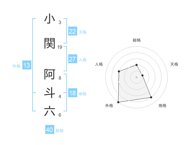 小関 阿斗六さんを姓名の画数から五運を鑑定