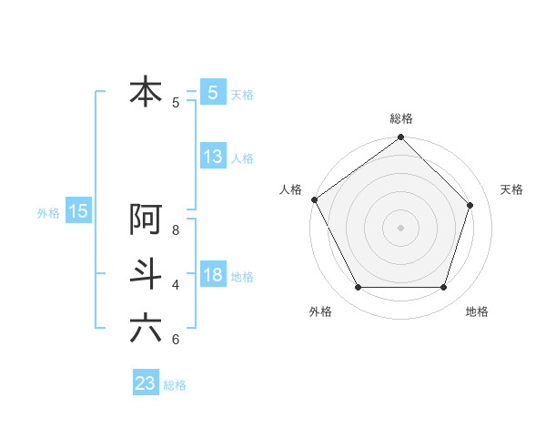 本 阿斗六さんの天格は5画の4点!