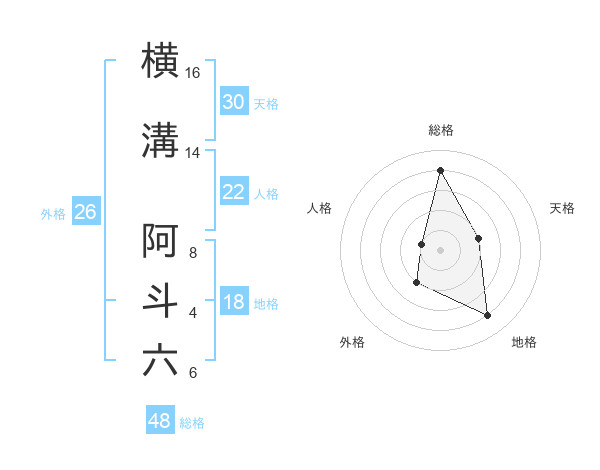 横溝 阿斗六さんの総格は48画の4点!