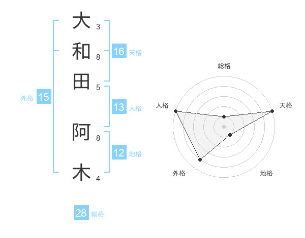 大和田 阿木さんを姓名の画数から五運を鑑定