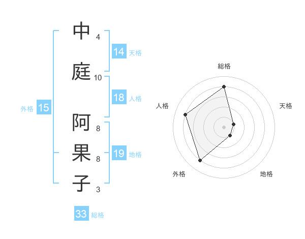 中庭 阿果子さんの外格は15画の4点!