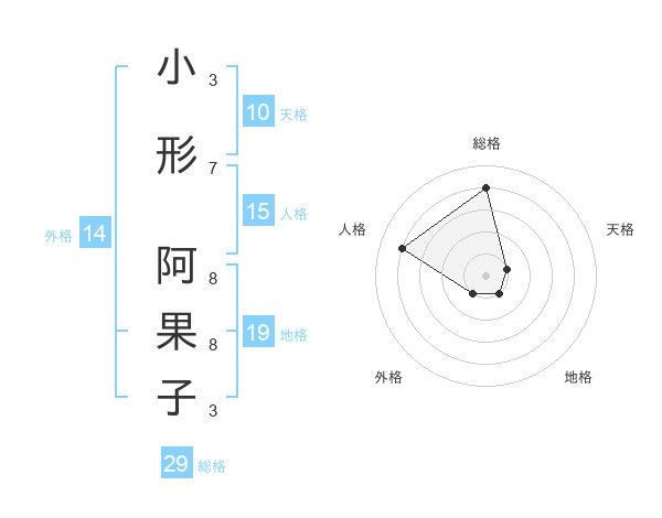 小形 阿果子さんを姓名の画数から五運を鑑定