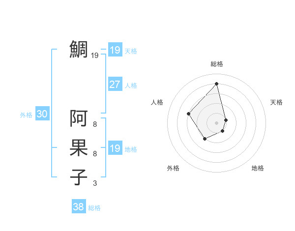 鯛 阿果子さんの総格は38画の4点!