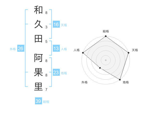 和久田 阿果里さんを姓名の画数から五運を鑑定