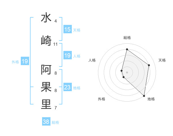 水崎 阿果里さんを姓名の画数から五運を鑑定